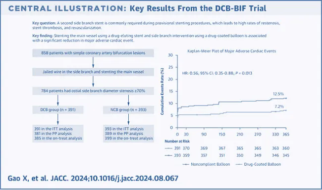 Gao, X., Tian, N., Kan, J., et al. Drug-Coated Balloon Angioplasty of the Side Branch During Provisional Stenting: The Multicenter Randomized DCB-BIF Trial. Journal of the American College of Cardiology, 2024.
