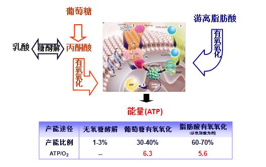 2.脂肪酸供能60%-90%,为最优底物,葡萄糖为次选底物,提供10%-40%的能量。