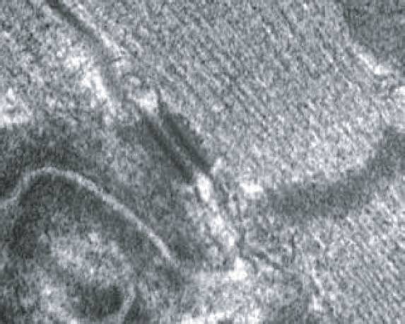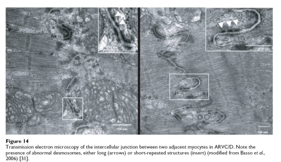 超微结构的观察研究很重要的发现是心肌细胞间质纤维化、桥粒结构和心肌纤维的退行性变 。