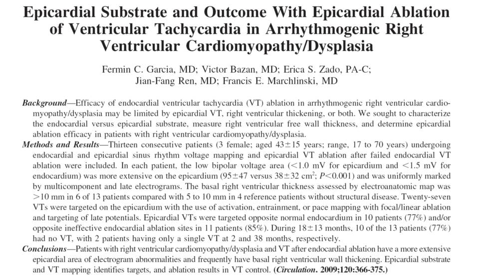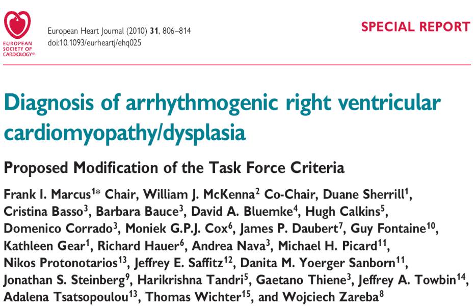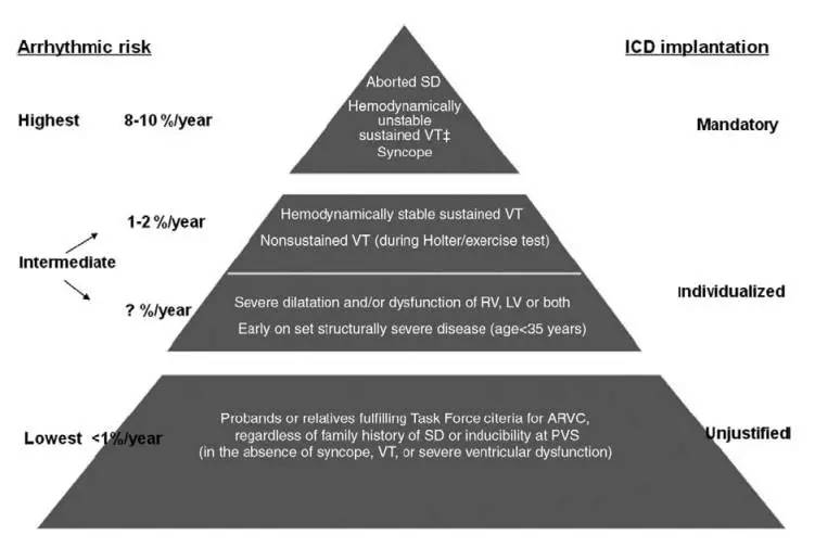 致心律失常性右室发育不全( arrhythmogenic right ventricular dysplasia,ARVD)和致心律失常性右室心肌病( arrhythmogenic right ventricular cardiomyopathy,ARVC)是由Dalla Volta氏1961年首先描述,1976年Fontaine等正式命名的以心律失常为突出表现的右室疾病 。