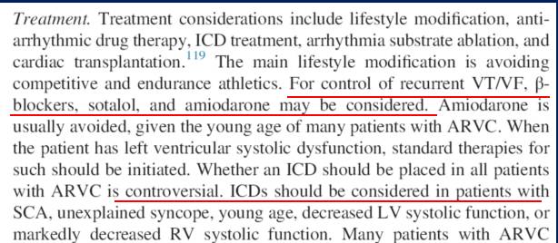 ARVD的药物治疗主要是针对发生的室性心律失常,与心律失常药物治疗的一般原则相同。