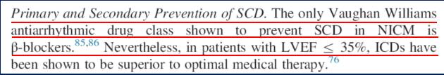 有效的预防非缺血性心肌病心脏性猝死的唯一药物是β-阻滞剂