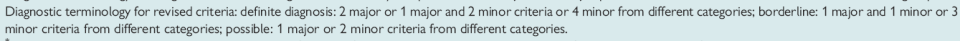 明确诊断:两项主要标准、一项主要标准和两项次要标准、不同类别中的四项次要标准。