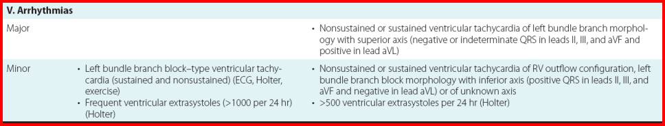 ARVD发生的室性心律失常,可以伴发其它类型的心律失常。其VT可以为持续性的,也可以为非持续性的。典型的VT心电图具备VT心电图的一般特点,但表现为左束支阻滞型,也可见多形态的VT、多源性VT、室扑及室颤。