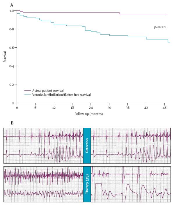 降低缺血性和非缺血性心脏病中的猝死发生危险。
