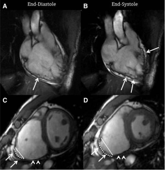 超声心动图学研究发现,表现为右心室弥漫性病变者常有明显右室扩大和功能减退。超声心动图上可以见到病变部位右室壁变薄,膨出或囊袋样突起的表现,其它部位可见到室壁增厚。