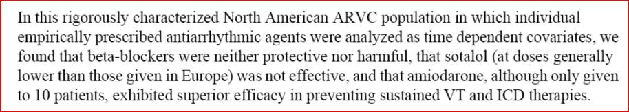 有关ARVD药物治疗方面的研究表明,-受体阻滞剂和Ⅲ类抗心律失常药的治疗效果优于Ⅰ类抗心律失常药物,联合用药优于单独用药。