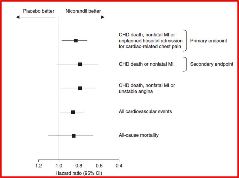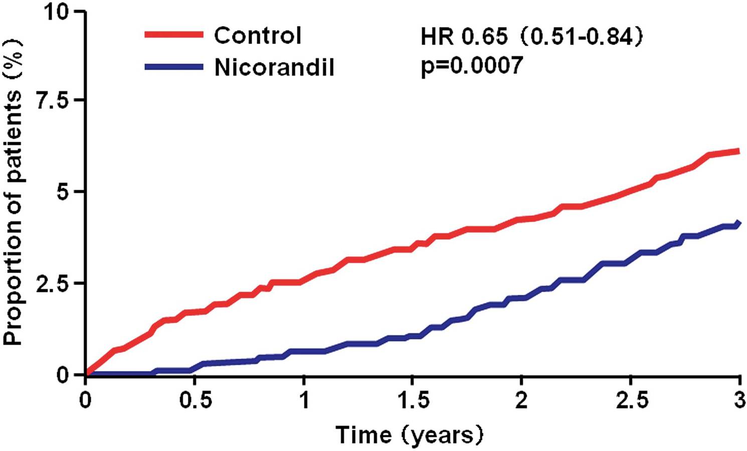 尼可地尔对稳定型心绞痛高危患者冠状动脉事件的作用