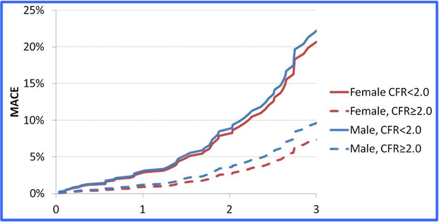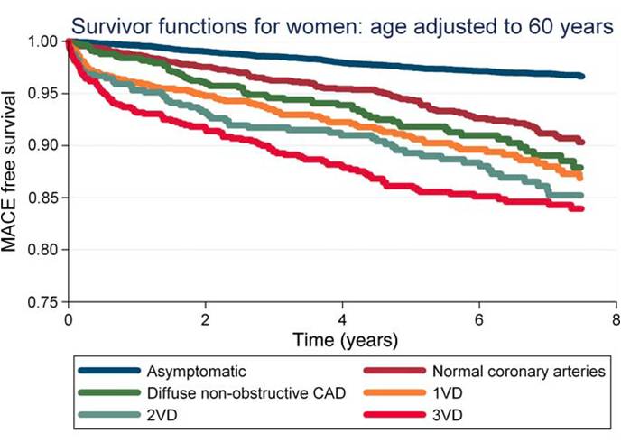 无阻塞型CAD的SA女性发生MACEs的危险较高 (n=4,711)