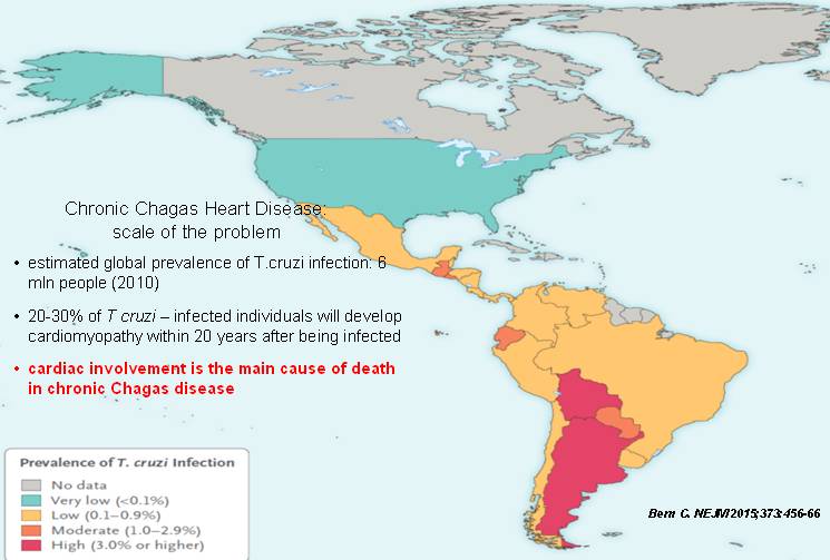 • BENEFIT试验纳入了2854例携带克氏锥虫(可引发Chagas病及典型Chagas心肌病[CCM]特征)的患者,受试者随机接受40~80天的安慰剂或苄硝唑治疗,随访5.4年