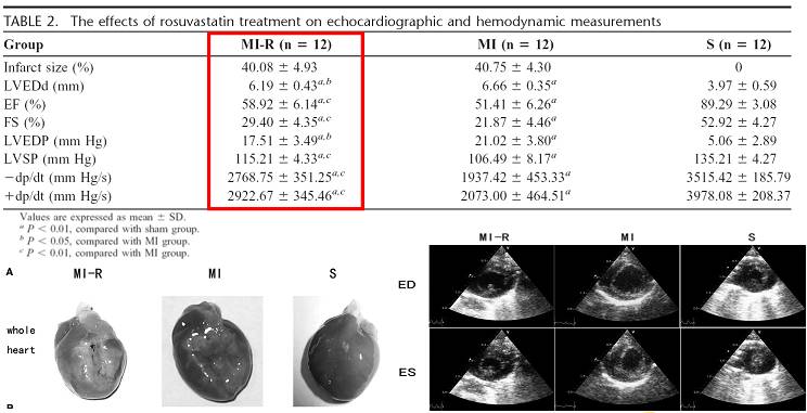 瑞舒伐他汀显著改善MI大鼠的心功能:
