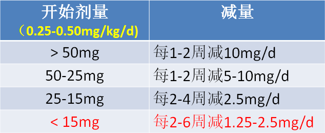 l在复发的临界剂量时(10-15mg/d),减量应非常缓慢