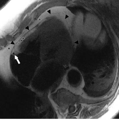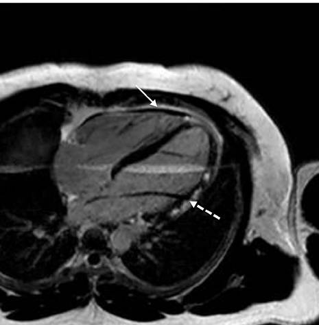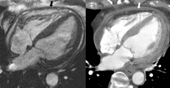 cine (SSFP) CMR ,nonspecific overall thickening of the pericardium (black