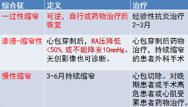 l经验性抗炎治疗:一过性缩窄或新诊断的缩窄伴心包炎症共存证据(CRP升高或CT/CMR示心包增强)