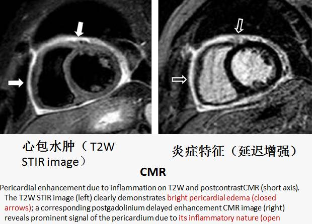l反映心包炎症的影像技术(如CMR)可以识别早期的可逆性心包炎。