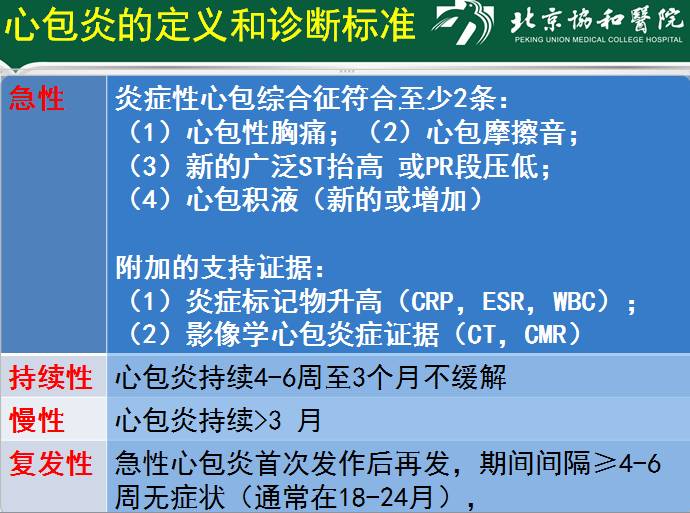 4. 对急性心包炎和复发性心包炎制定了特定的诊断标准。