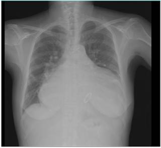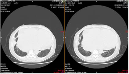 胸片提示:双肺纹理增强模糊,左侧少量胸腔积液,心胸比0.81。