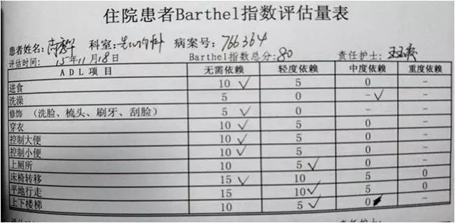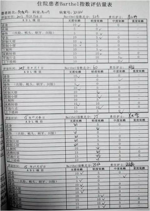 住院患者Barthel指数评估量表评分逐渐好转。