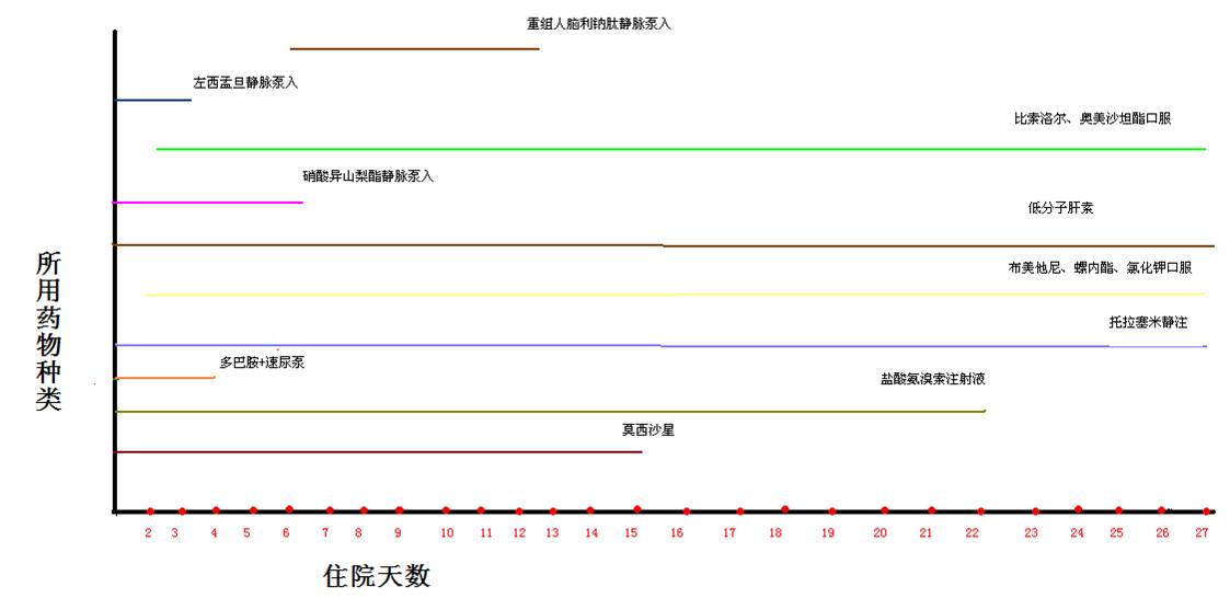 针对患者目前伴有严重心功能不全,给予其标准抗心衰治疗,在应用利尿剂及扩血管药物基础上,加用ACEI或ARB及β受体阻滞剂。因其心功能不全严重,院外传统方式治疗效果不佳,给予其根据心率、血压情况,先后加用左西孟旦及重组人脑利钠肽持续静脉泵入抗心衰治疗。