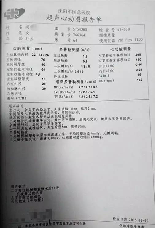复查心脏超声: