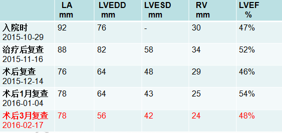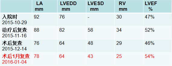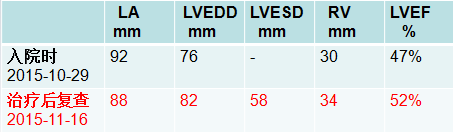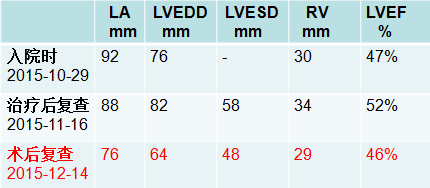 经过上述治疗,患者心功能不全症状能够得到改善,使得能够接受手术治疗解除原发病。
