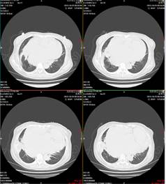 肺部CT示右肺下叶基底段见斑片状稍高密度,边界清晰。考虑:考虑右肺下叶炎症,不除外占位性病变。
