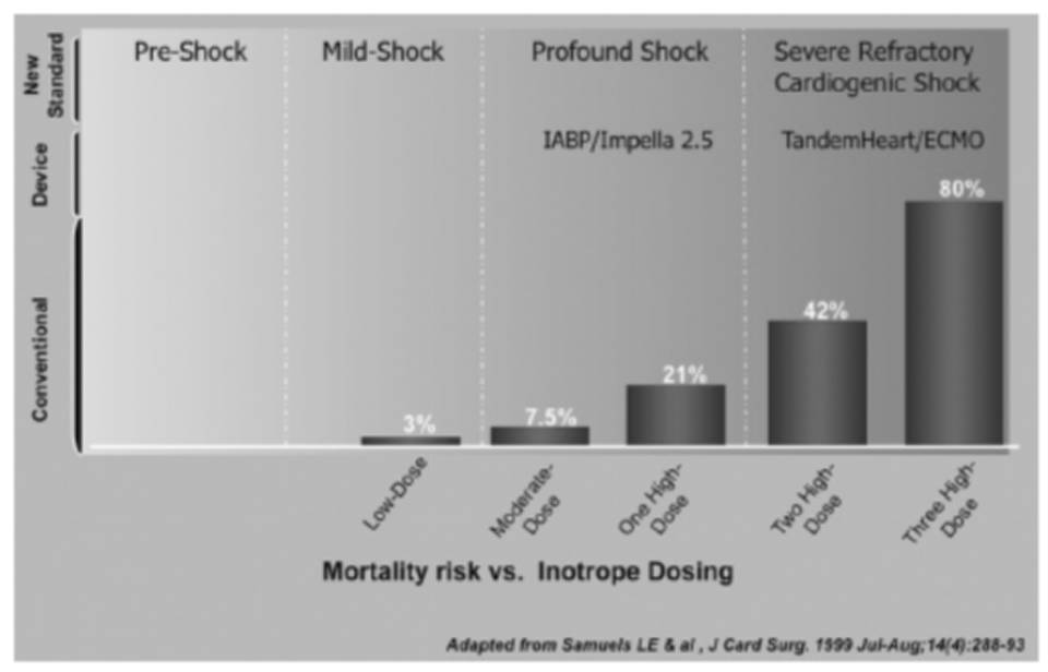 严重恶化的休克 (SRCS) :对大剂量正性肌力药物、缩血管药物或IABP没有反应 、LVAD