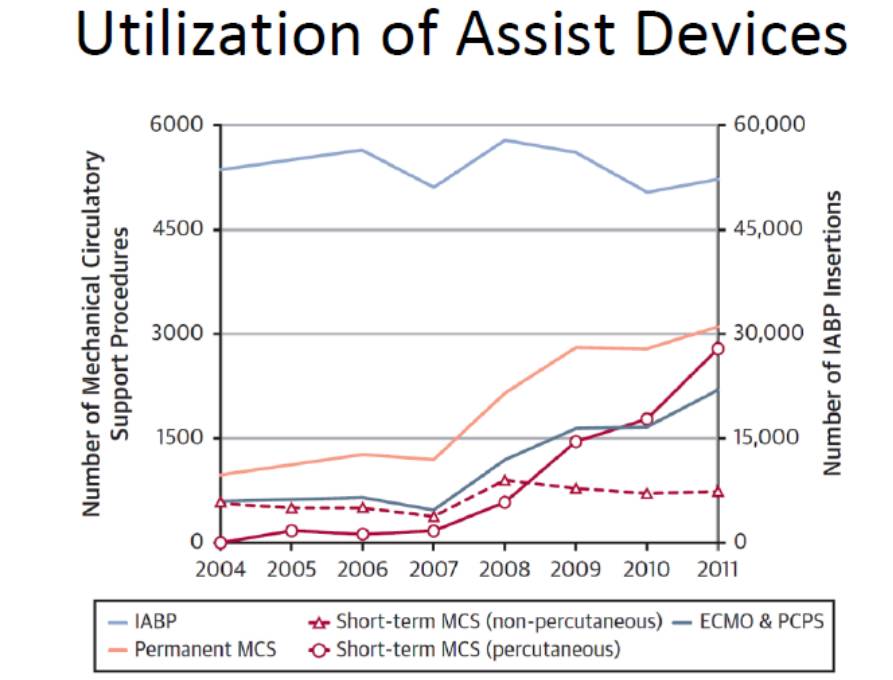 在过去几十年中,因为早期PCI在AMI中的应用,CS的发病率下降,目前STEMI中5%-8%, non-STEMI 中2.5%, 转化成病例约4万-5万患者/年(美国