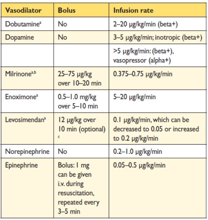多巴胺(Ⅱa类,C 级):小剂量有选择性扩张肾动脉、利尿作用;大剂量有正性肌力和血管收缩作用
