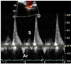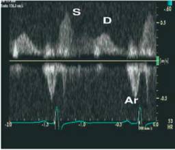 ●肺静脉血流频谱:S峰、D峰、S/D比值及Ar峰