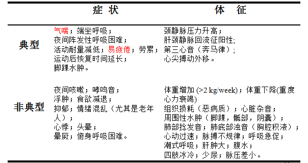 ①心衰的症状or体征
