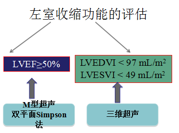 ②左室收缩功能正常or轻度异常(LVEF≥50%)