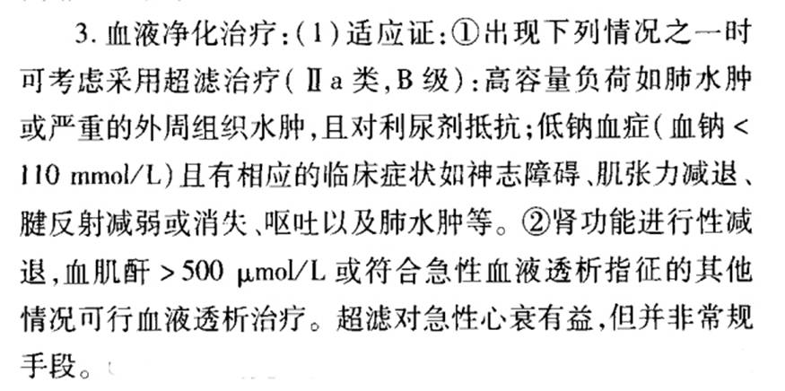 心力衰竭的超滤治疗宜采取连续缓慢的超滤方案,且超滤速度≤PRR。