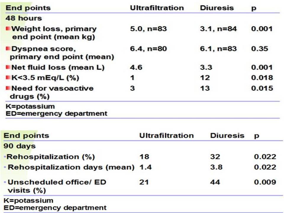 结果发现:体重下降与液体清楚方面,超滤治疗优于利尿剂。