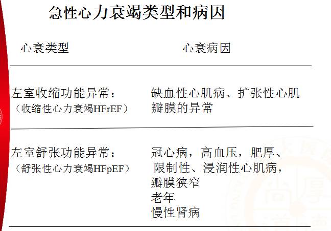 急性心衰表现类型和病因