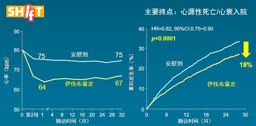 SHIFT研究结果证实,在慢性心衰患者中使用β受体阻滞剂的同时联合应用伊伐布雷定,可进一步控制患者心率,显著降低死亡率及再入院率,改善患者心功能,提高生活质量,并节约整体医疗花费,也因此得到国内外心衰治疗指南的一致推荐。