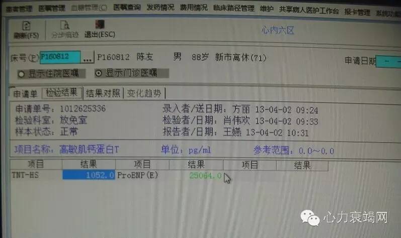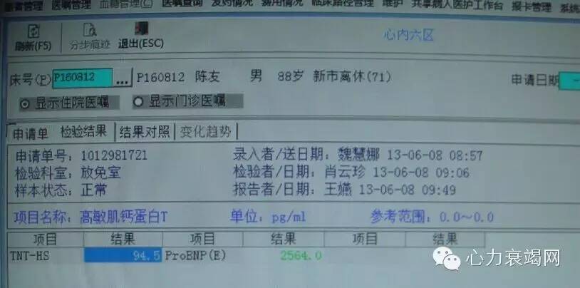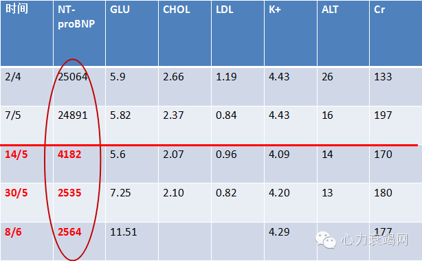 心肌二项:NT-proBNP 17043pg/ml TNT-HS 195.3pg/ml