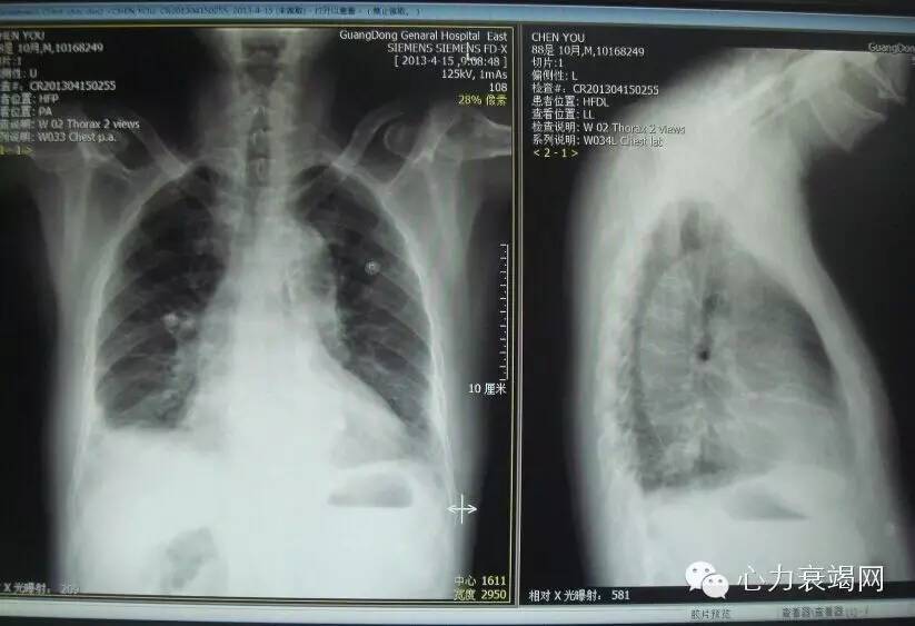 现病史:7年前出现心前区胸闷痛,2006年出现急性下壁心肌梗死,CAG:LAD远端狭窄70-90%,LCX中段90%,RCA近端70-90%,中段闭塞,予PTCA,2013年胸闷、气促,CTnT811ng/L,Pro-NTBNP>9000pg/ml