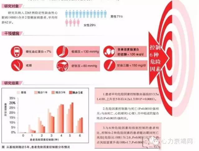 BARI2D研究还显示,尽管控制多项危险因素能改善生存、减少心血管事件,但只有少部分患者全部6项危险因素均得到控制。而REGARDS前瞻性队列研究、COURAGE荟萃分析和FREEDOM研究等均显示,只有少部分SIHD患者能实现多种危险因素同时控制达标。
